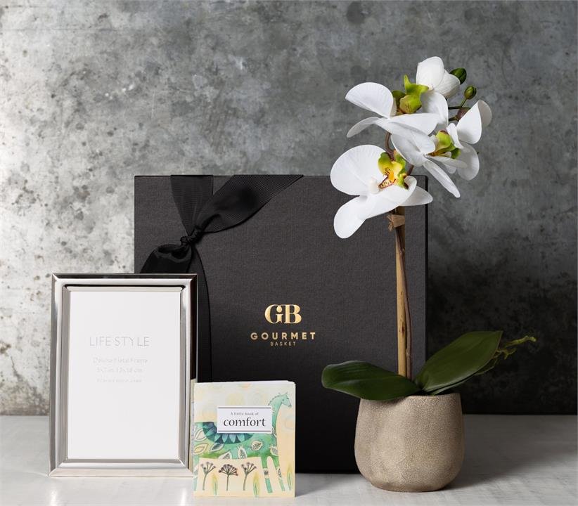 - Stylishly presented in our Gourmet Basket “With Sympathy” Gift Box finished with ribbon, tissue and gift card