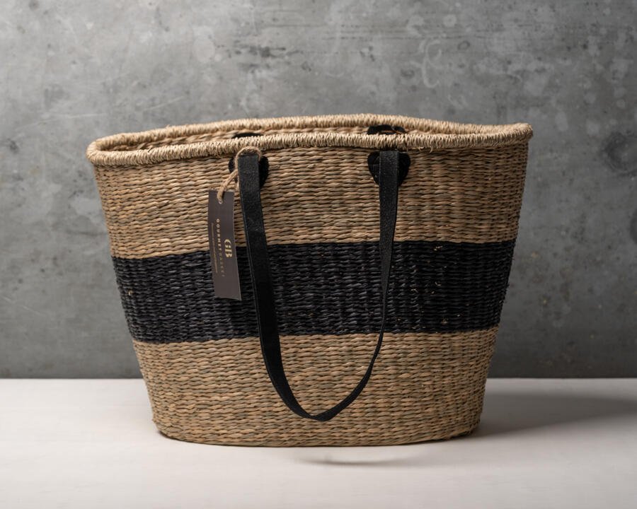 This extremely versatile and stylish market basket is handwoven with seagrass and comes with beautiful long faux leather handles, tough and durable, making it the perfect choice for the supermarket, market shopping or even the beach.