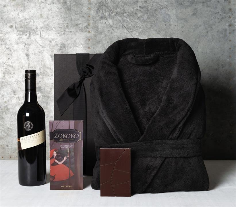The perfect relaxation hamper for him. Relax & unwind in ultimate comfort with a glass or red & dark chocolate.