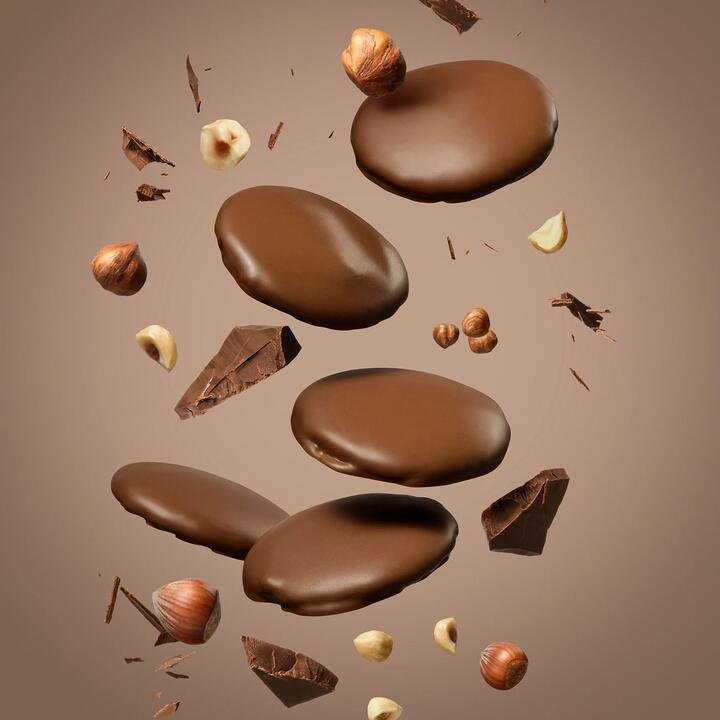 Creamy gianduja with crunchy caramelised hazelnut pieces, enrobed in milk chocolate.