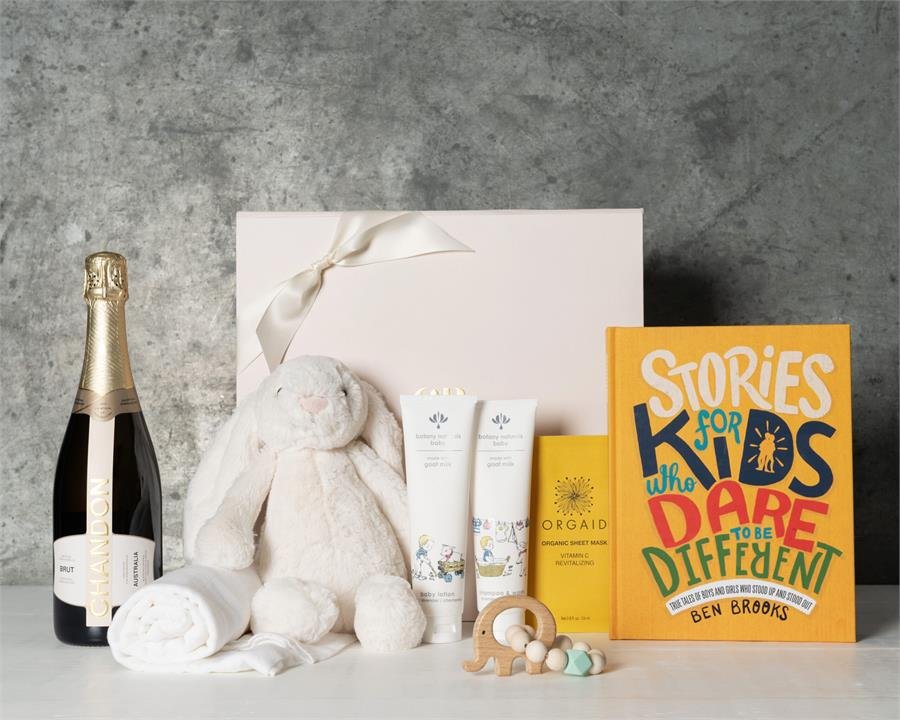 This beautiful hamper is filled with luxurious items to pamper both baby and parents.