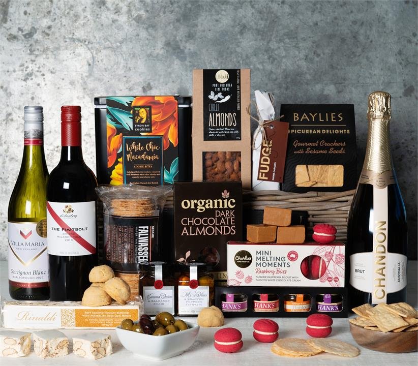 • Stylishly presented in a premium basket, finished with ribbon, tissue and gift card